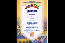 Дипломом награждается Евдокимов Данил (8 К), занявший 3 место в командном первенстве МБУ "Подросток" по атлетической гимнастике в возрастной группе 11-13 лет