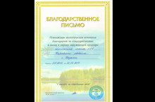 Поволжская экологическая компания благодарит за сотрудничество и вклад в охрану окружающей природы коллектив школы №67 Кировского района г.Казани и награждает благодарственным письмом