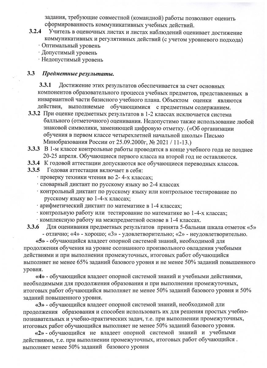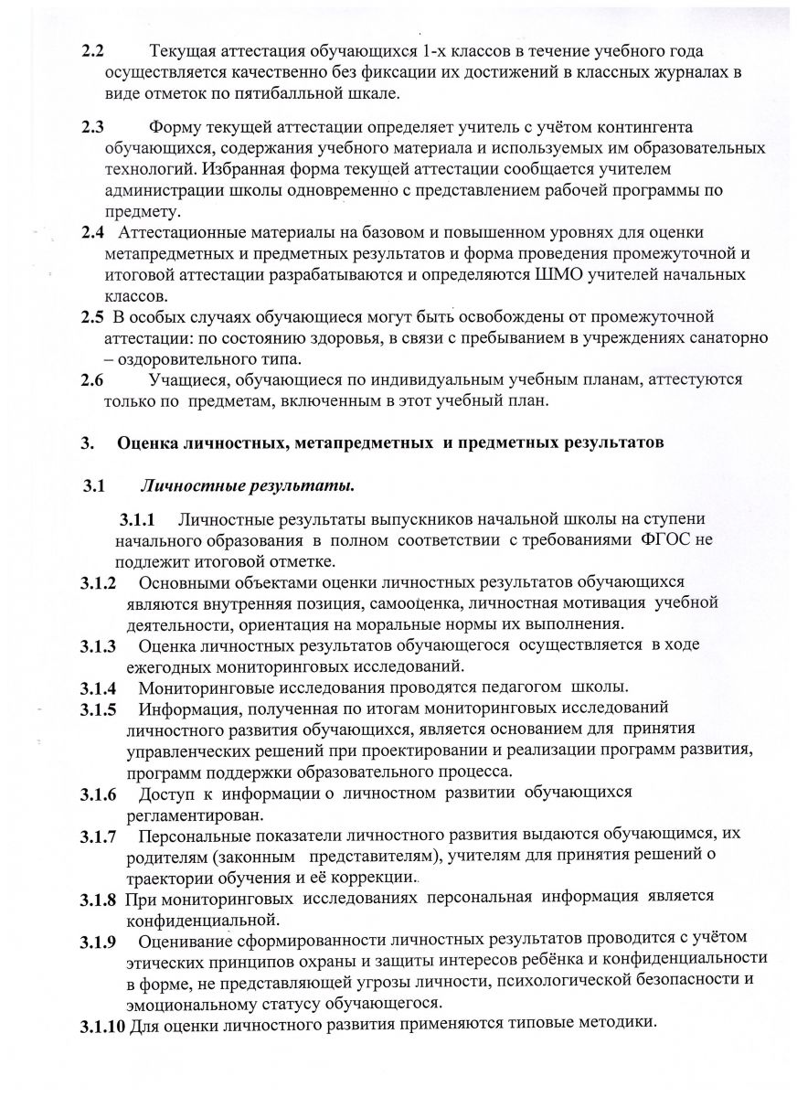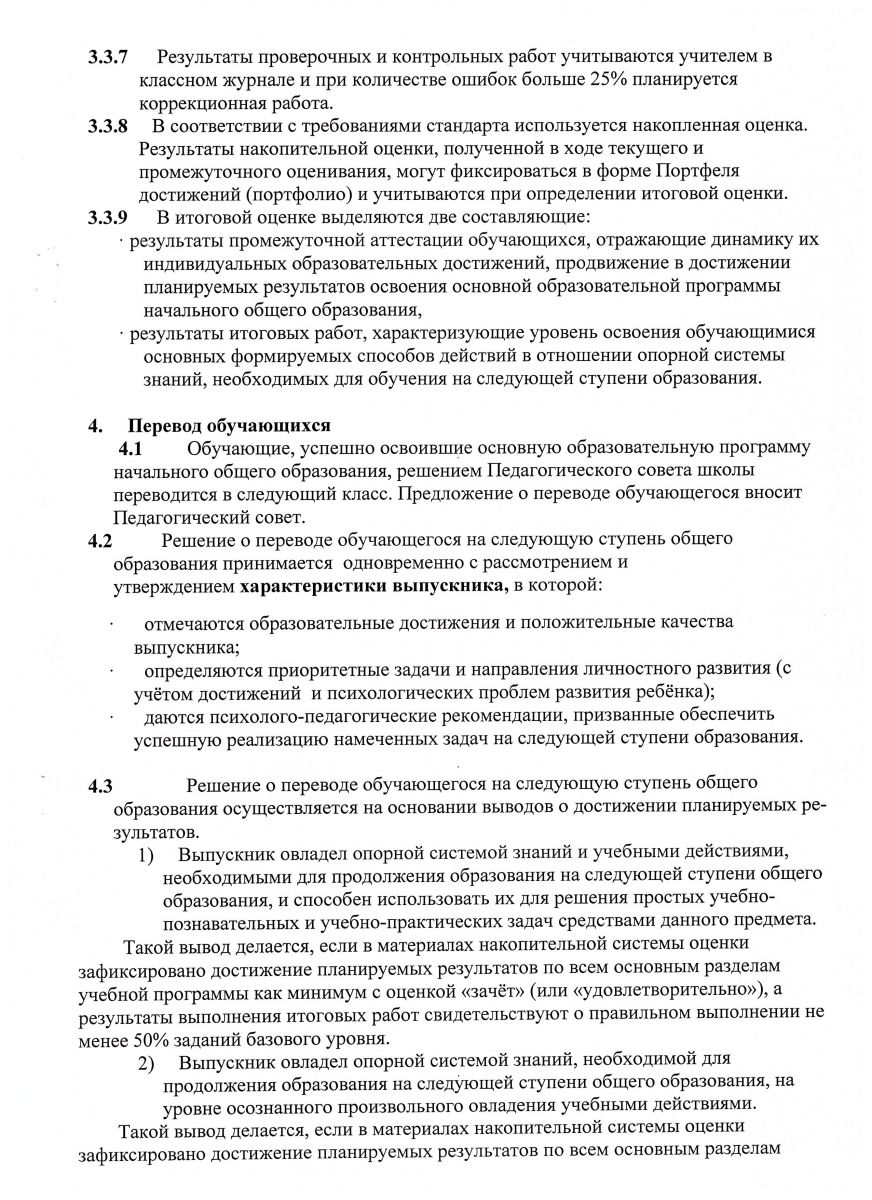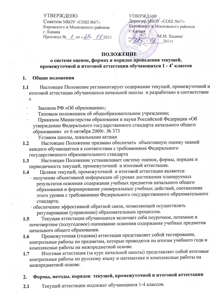 Положение о системе оценок, формах и порядке проведения текущей, промежуточной и итоговой аттестации с 1-4 классы