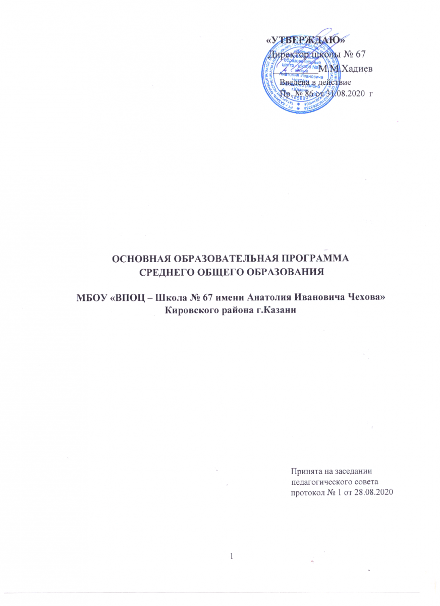 Муниципальное бюджетное общеобразовательное учреждение "Военно-патриотический образовательный центр – школа №67 имени Анатолия Ивановича Чехова" Кировского района г.Казани