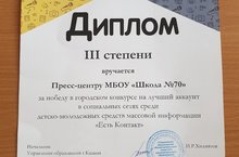 Пресс-центр нашей школы занял 3 место в конкурсе социальных сетей детско-молодежных средств массовой информации. Поздравляем!
