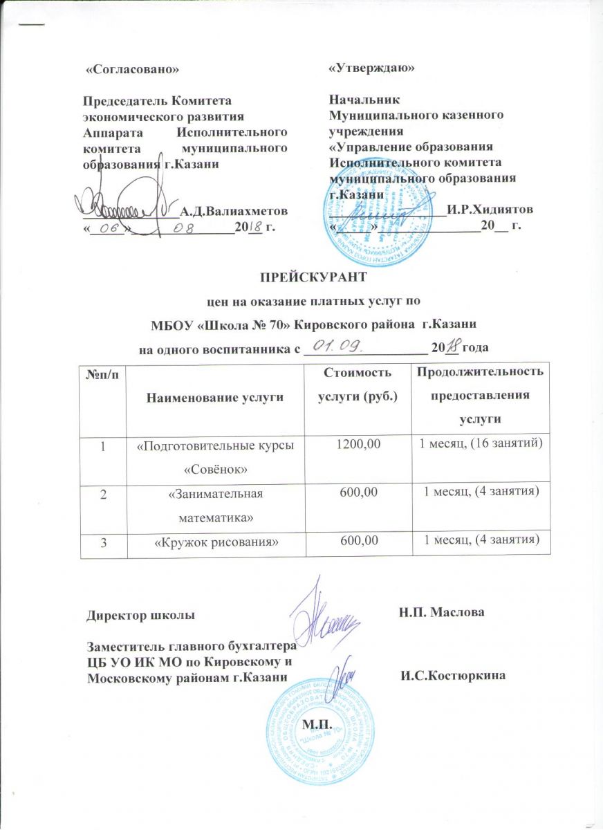 Прейскурант на оказание платных услуг Приложение к прейскуранту