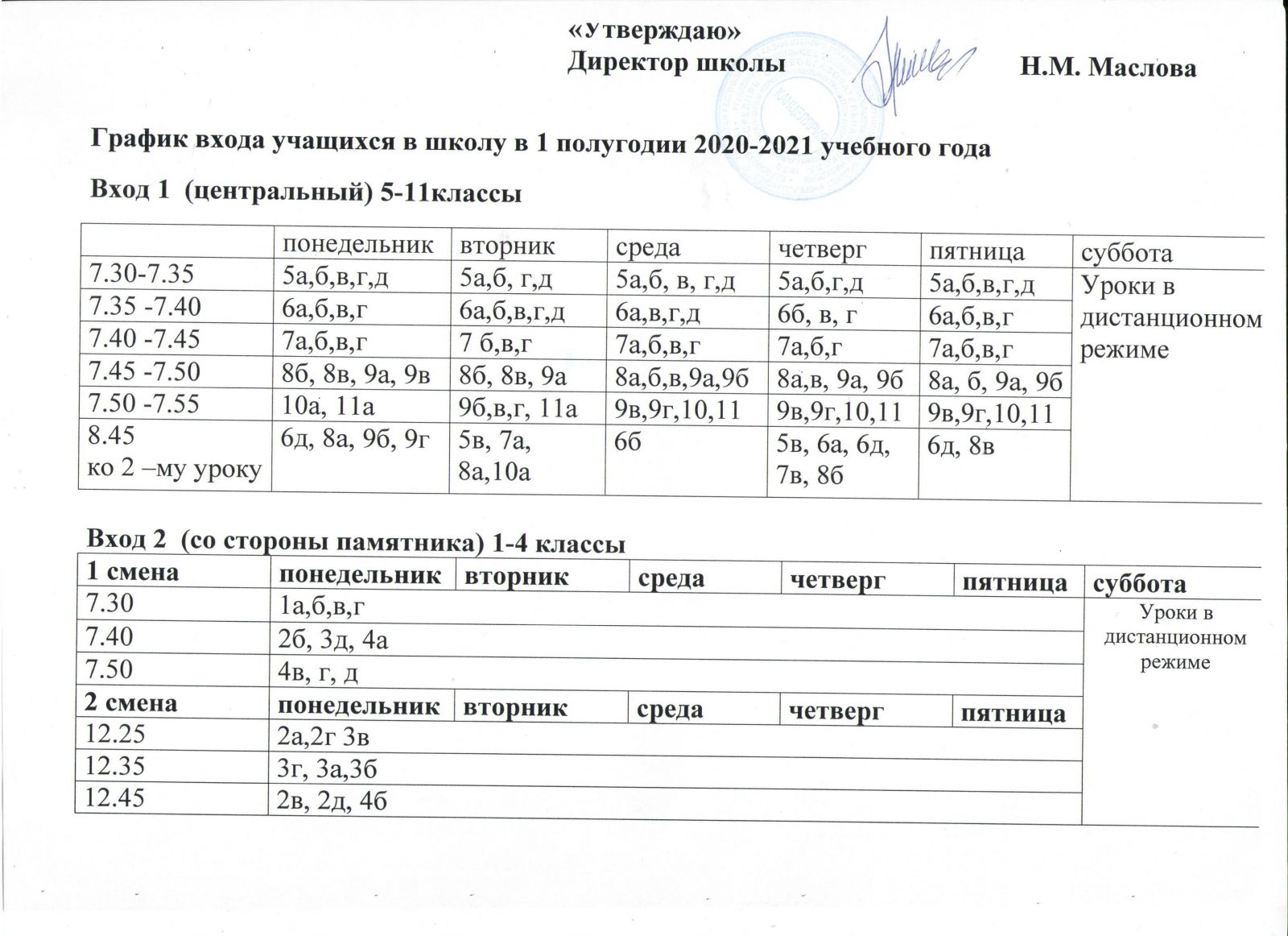 - Расписание звонков