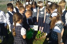 В акции "Растем вместе" приняли участие ученики 1-х классов. Они посадили деревья в школьном дворе. Будем вместе тянуться вверх к знаниям!!!