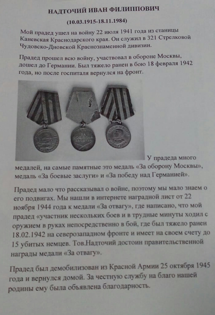 Рассказ ученика 4 класса Казакова Кирилла о своем прадедушке