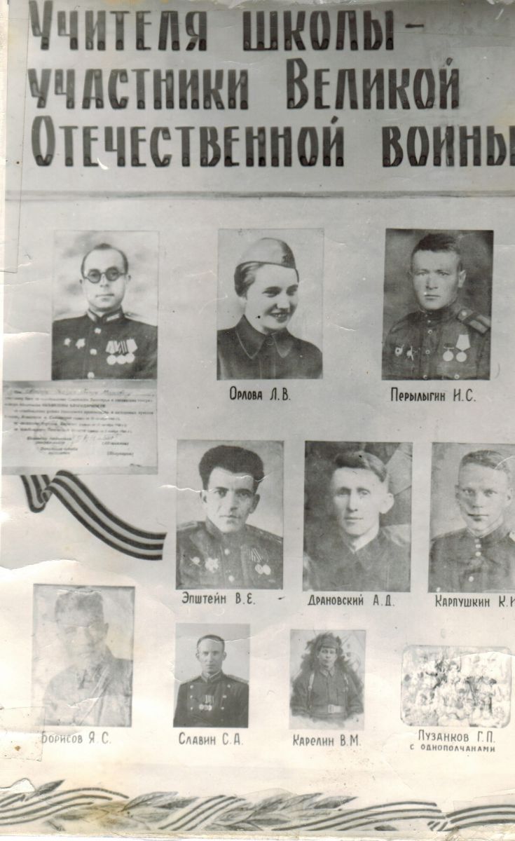 Карпушкин Кондратий Ильич ветеран Великой Отечественной войны. Карпушкин Кондратий Ильич родился 14 сентября 1916 год в городе Казани. В 1936 году закончил школу № 1 при заводе им. В.И. Ленина. С 1936 по 1941 годы обучался в Казанском государственном университете им. В.И. Ульянова-Ленина на биолого-почвенном факультете. На момент начала войны студент 4 курса Кондратий Карпушкин проходил полевую практику на плодово-ягодной станции, находящейся в селе Теньки. Там он и узнал о начале Великой Отечественной Войны. Через неделю пришёл вызов из Казани, в котором говорилось, что Карпушкин К.И. срочно должен прибыть в университет. В университете ему досрочно вручили диплом об окончании ВУЗа и сказали, что обучения на 5 курсе не будет. Кондратия Ильича призвали в армию, и как талисман из мирной жизни он взял с собой диплом. С конца 1941 года в течение 9 месяцев проходил обучение во Львовском военно-пехотном училище, после окончания которого был направлен на Западный фронт. Служил командиром стрелкового звена в 17 стрелковой дивизии 1314 стрелкового полка, в звании младшего лейтенанта. В 1943 году после ранения в боях за город Сухиничи получил тяжёлое пулевое ранение правой ноги. После 7-месячного лечения был комиссован и направлен служить командиром учебно-миномётного взвода на Урал (Камышовские лагеря). Готовил для фронта миномётные расчёты. Победу встретил на Урале, где служил до 1946 года. С апреля 1946 по сентябрь 1976 года работал в школе № 81 в должности учителя физкультуры, военного дела, биологии. Награждён Орденом Отечественной войны, медалью за боевые заслуги и юбилейными медалями. /upload/storage/org2179/files/CCI10032015_0000.jpg