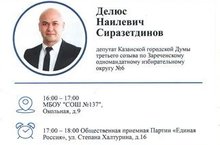 Приглашаем вас 8 декабря 2017 года с 16.00 до 17.00 часов на приём населения депутата Казанской государственной Думы Сиразетдинова Делюса Наилевича. Подробнее на сайте SDELUS.RU