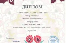 На городском конкурсе "Татар кызы - 16" ученица 11 класса школы №135 Набиуллина Адиля завоевала победу в номинации "Талантливая девушка".
