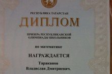 Поздравляем призера Республиканской олимпиады школьников по математике ученика школы Тараканова Владислава с победой