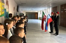 Сегодня в школе прошла торжественная церемония поднятия государственного флага Российской Федерации и Республики Татарстан.