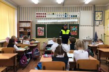 Сегодня сотрудник ГИБДД провел с обучающимися 2-3-х классов беседу о том, как правильно вести себя на дорогах, пешеходных переходах и в общественном транспорте.