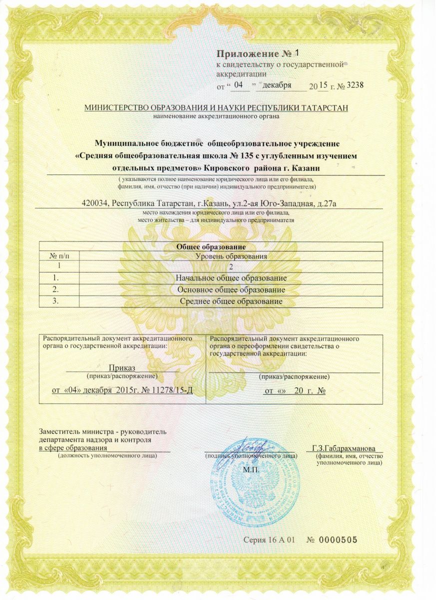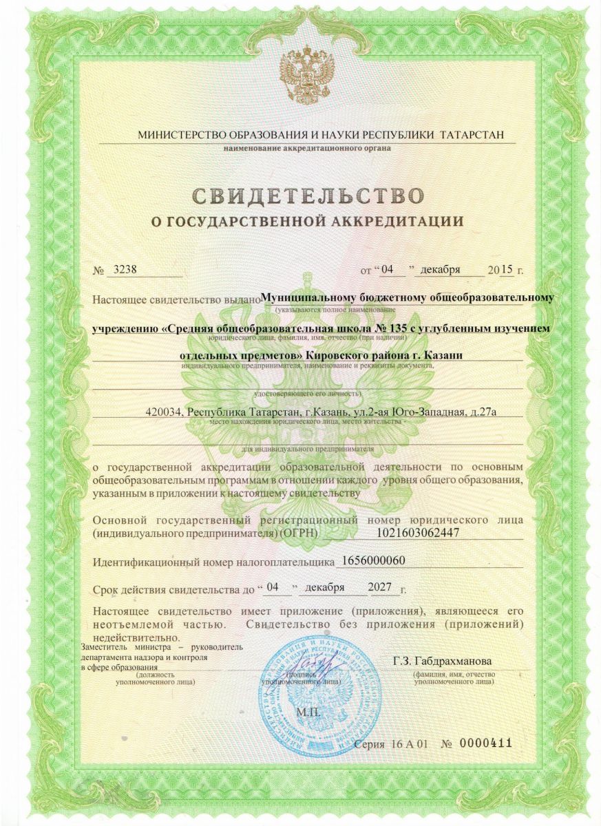 Муниципальное бюджетное общеобразовательное учреждение "Средняя общеобразовательная школа №135 с углубленным изучением отдельных предметов" Кировского района г. Казани