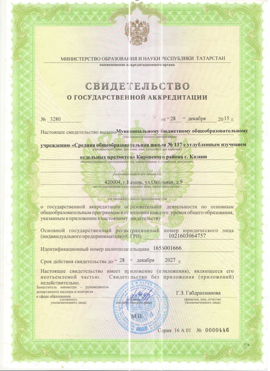 Муниципальное бюджетное общеобразовательное учреждение «Средняя общеобразовательная школа № 137 с углубленным изучением отдельных предметов» Кировского района г. Казани
