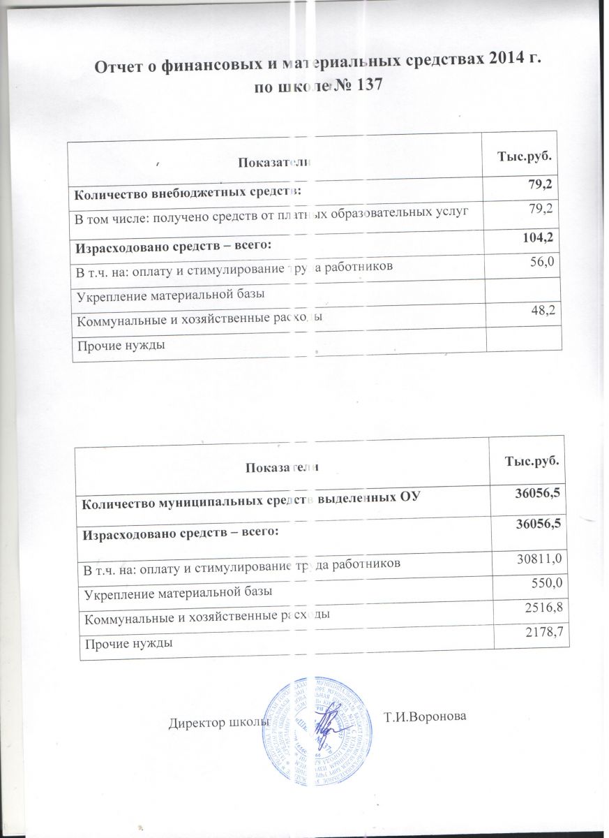 Отчет о финансовых и материальных средствах за 2014 г. по школе № 137