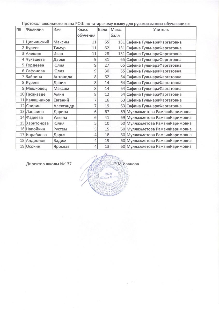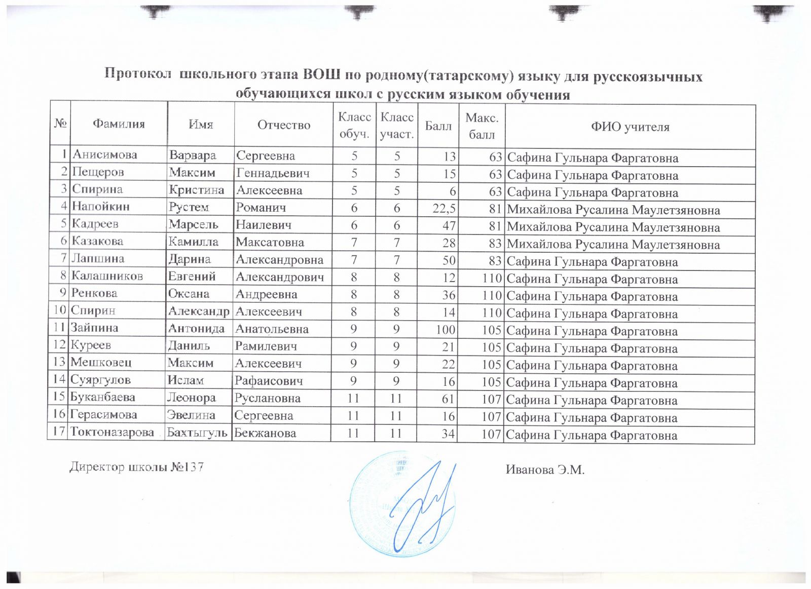 Муниципальное бюджетное общеобразовательное учреждение «Средняя общеобразовательная школа № 137 с углубленным изучением отдельных предметов» Кировского района г. Казани