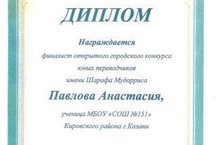 Поздравляем нашу ученицу Павлову А. с выходим в финал открытого городского конкурса Ш.Мударриса.