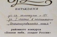 Учащиеся нашей школы заняли 1 место в районном конкурсе инсценированной песни "Поклон тебе, солдат России". Молодцы! !!!