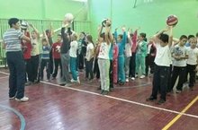 Ученики начальной школы участвовали в "Весёлых стартах", а старшие ребята играли в волейбол.