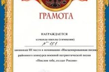 Поздравляем команду нашей школы, занявшую 3 место в конкурсе инсценированной песни "Поклон тебе, солдат России"