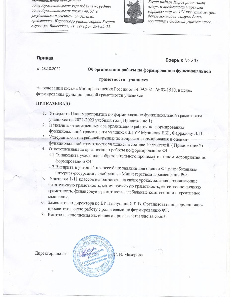 Приказ МО и Н РТ Об утверждении комплекса мер пофункциональной грамотности