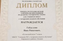 Призёр Республиканской олимпиады для школьников по родному (татарскому ) языку 10.02.2021