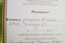 Район күләмендә үткәрелгән экологик театрлар бәйгесендә 1а сыйныфы укучылары коллективы "Теремкәй" спектаклен сәхнәләштереп 1 нче урын яулады. Җитәкчесе Сафина А. Ш. 27.03.2017