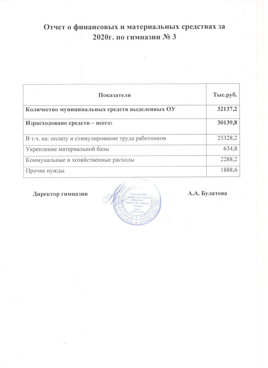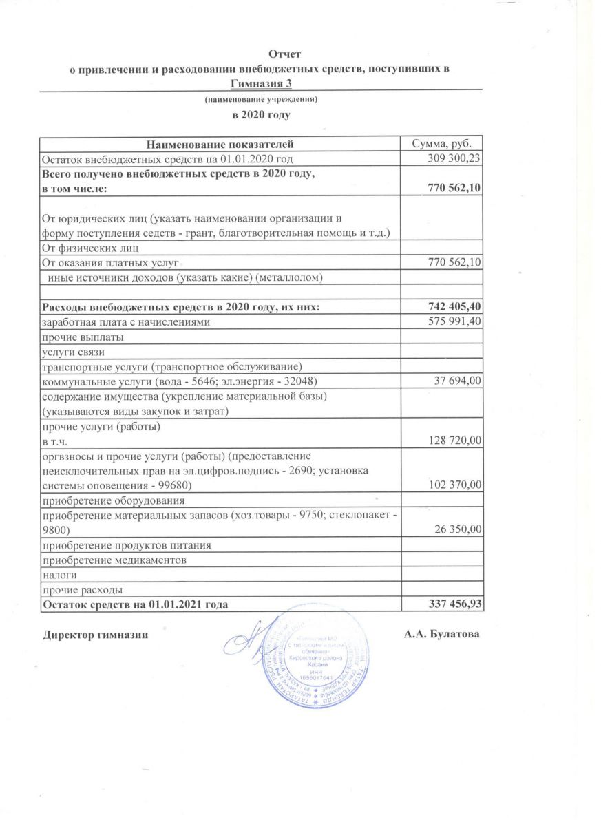 Отчет о привлечении и расходовании внебюджетных средств 2020 г.