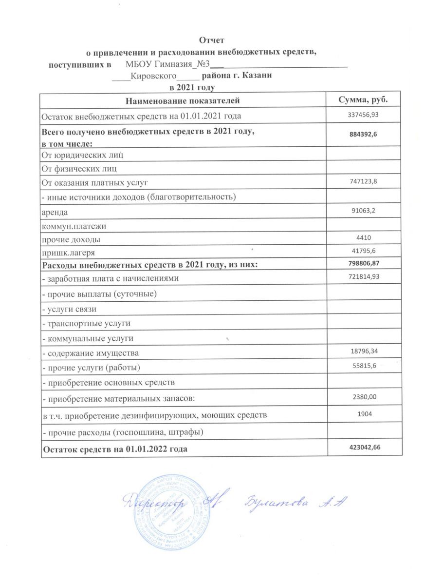 Отчет о привлечении и расходовании внебюджетных средств 2021 г.