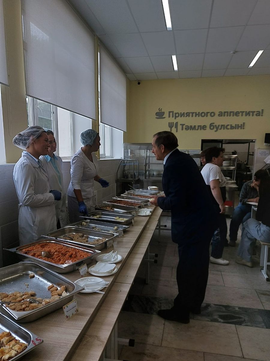 Организация горячего питания в общеобразовательном учреждении осуществляется АО «Департамент продовольствия и социального питания г. Казани».