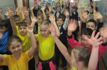 В гимназии в рамках недели добра смс-дети и активисты гимназии провели утреннюю спортивно-танцевальную пограмму "Танцуй добро".