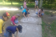 Бүген гимназиядә җәйге лагерь үзенең эшен башлап җибәрде. Беренче көнне үк балалар Хәзинә музеена экскурсиягә бардылар. Экскурсиядән кайткач асфальтта рәсемнәр ясадылар.