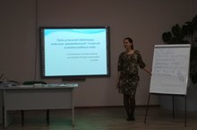 Классные руководители 5-х классов посетили семинар "Пути успешной адаптации классных руководителей 5 классов в начале учебного года". На фото педагог-психолог психологического центра "Ресурс" Вера Сергеевна