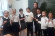 На фото с учениками 5б класса наш педагог- воспитатель Разина Гарафетдиновна