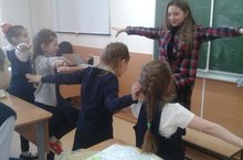 7 сыйныф укучылары башлангыч сыйныф укучыларына физкульт минутка үткәрделәр.