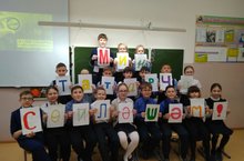 4 сыйныф укучылары "Мин татарча сөйләшәм" акциясен үткәрделәр. Җитәкчеләре Лөйсән Илһамовна.