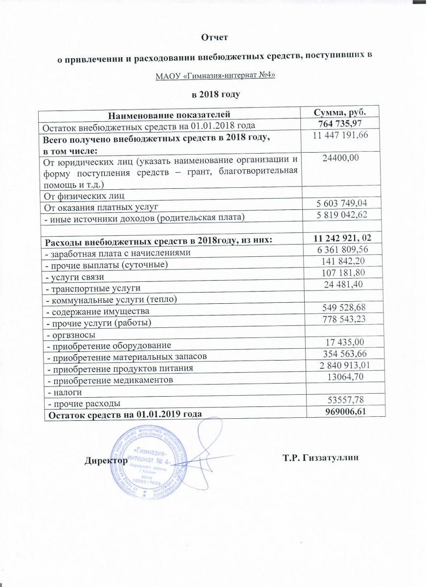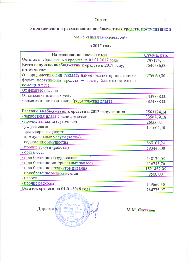 Отчет о расходовании внебюджетных средств в 2017 г.