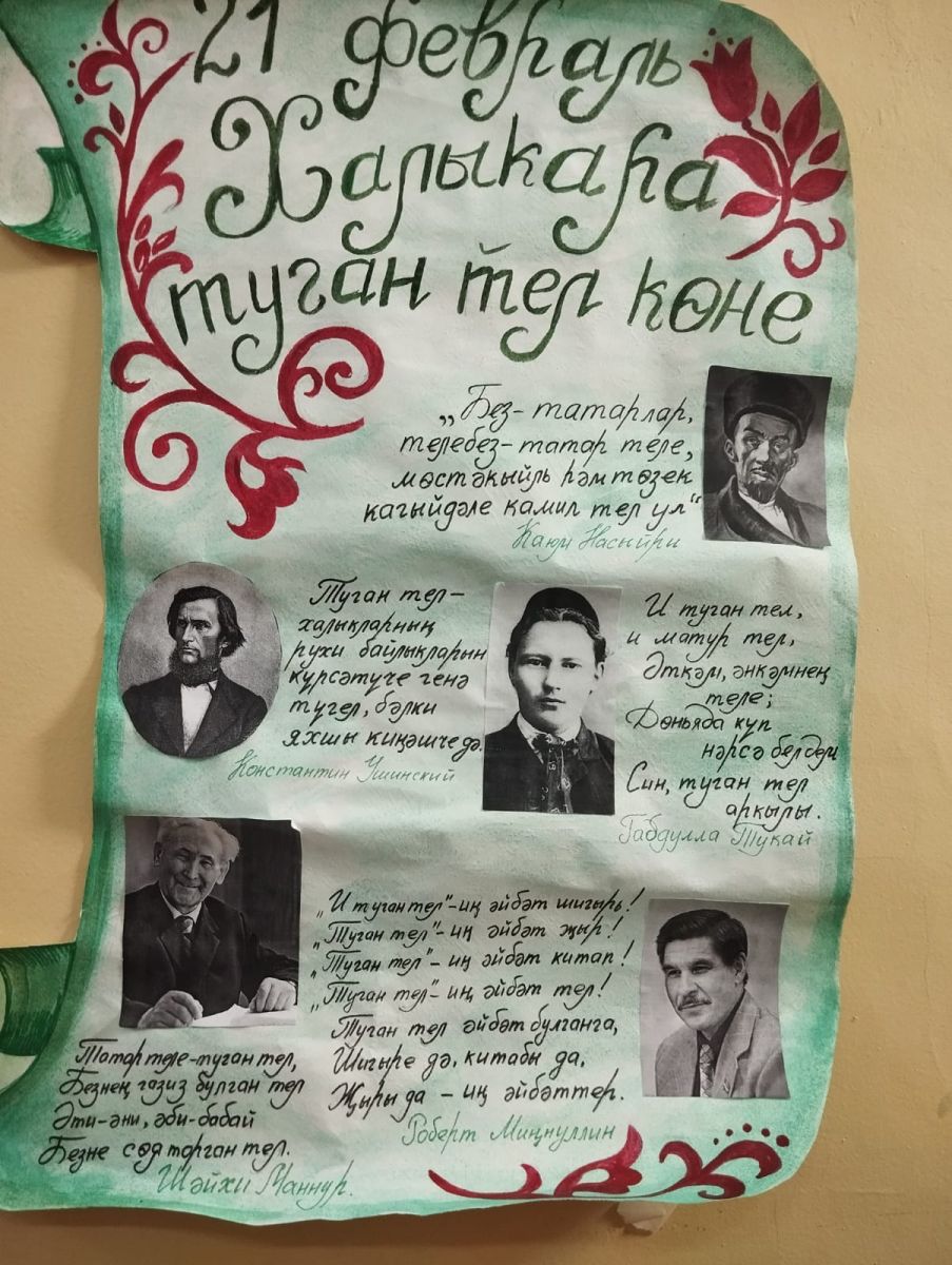 Опубликовано: 21.02.202421нче февраль — халыкара туган телләр көне буларак билгеләп үтелә. Әлеге дата уңаеннан Киров һәм Мәскәү районнары мәктәпләрендә халыкара туган тел көненә багышланган төрле чаралар булып узды.