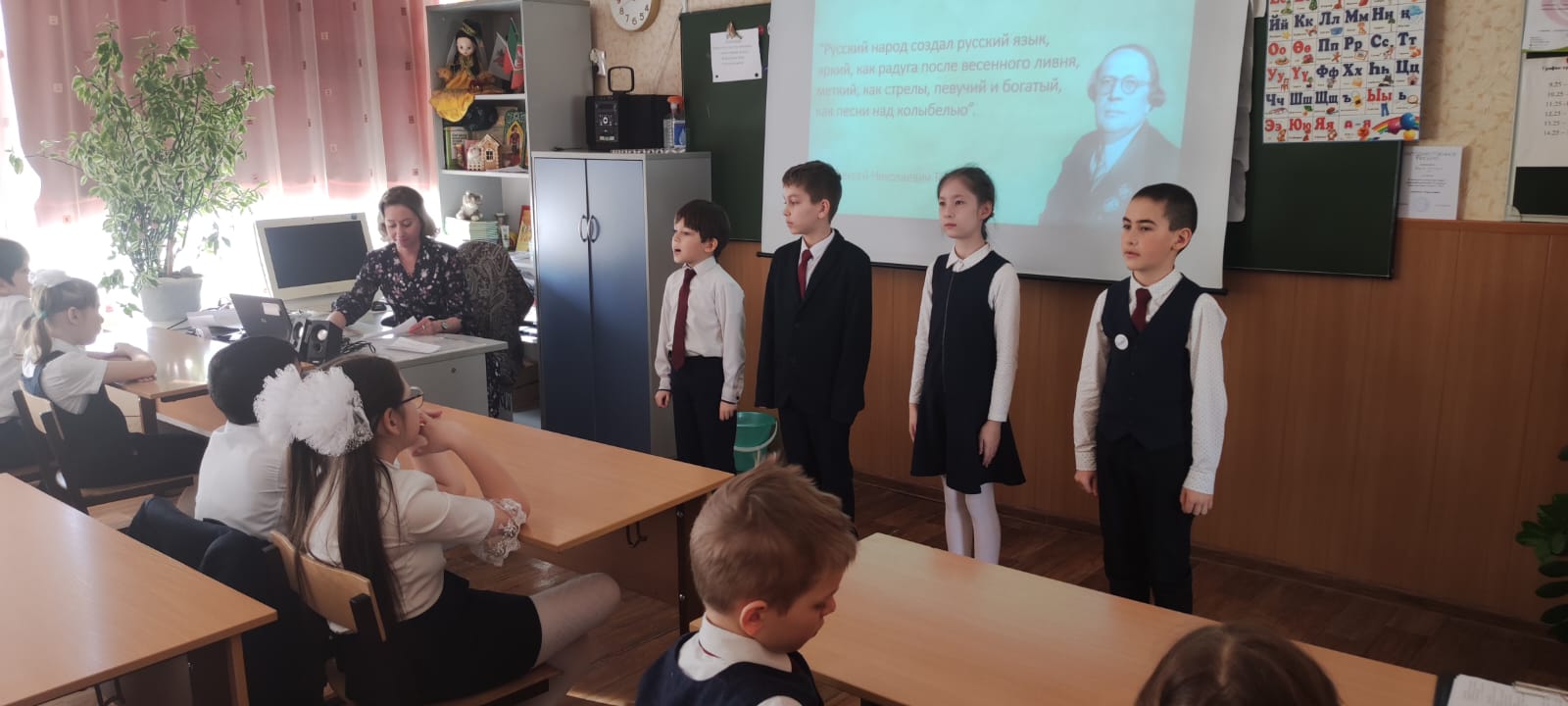 Опубликовано: 19.03.202419 нчы мартта Казан шәһәре Мәскәү районының 34 нче гомуми белем бирү мәктәбендә туган теле укытучыларының " Туган теле һәм әдәбияты дәресләрендә, дәрестән тыш чараларда укучыларның мәдәни компетенциясен формалаштыру” исеме астында район семинары узды. Семинарда ачык дәресләр, дәрестән тыш чаралар күрсәтелде, түгәрәк өстәл артында эшлекле сөйләшү булды. Башлангыч сыйныф укучылары белән үткәрелгән дәрестә һәм дәрестән тыш чарада бәйләнешле сөйләм үстерү өчен кулланылган алымнар күрсәтелде. Боратынскийга багышланган мәктәп муззеенда үткәрелгән вертуаль экскурсия бик кызыклы һәм эчтәлекле булды.