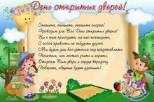 День открытых дверей является одной из форм работы с родителями, которая предоставляет им возможность познакомиться с дошкольным образовательным учреждением, его традициями, правилами, задачами воспитательно – образовательного процесса. Цель проведения данного мероприятия – установление доверительных отношений между родителями и педагогами, определение задач совместного воспитания детей и их реализация. Каждый родитель хочет знать, чем занимается его ребёнок в детском саду, интересна ли его жизнь. Показать, как же протекает жизнь детей в стенах детского сада, это и было главной задачей Дня открытых дверей.Коллектив педагогов стремился показать родителям, что в учреждении создана безопасная, педагогически грамотная и психологически комфортная среда для развития ребёнка и укрепления его здоровья.