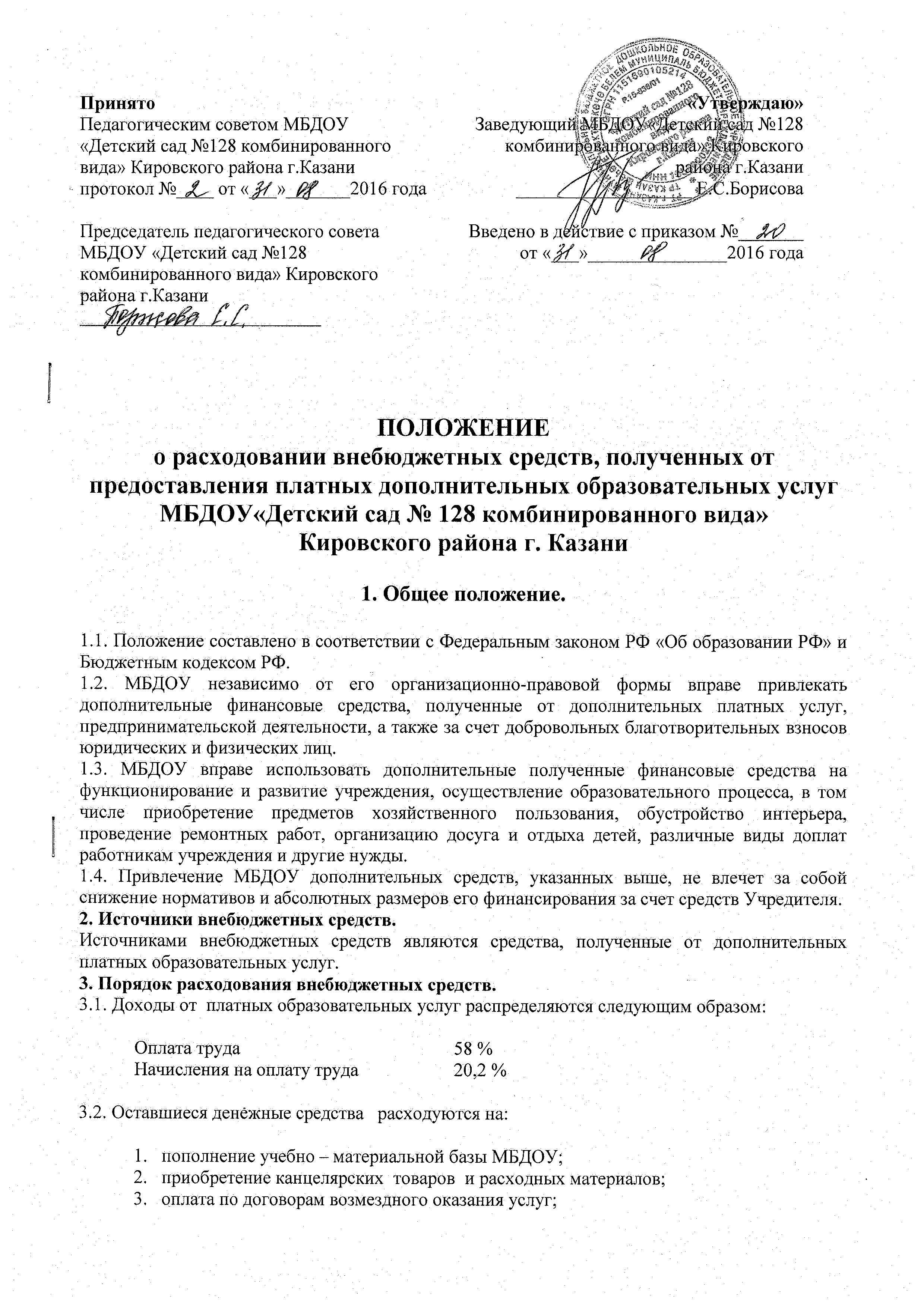 Положение о расходовании внебюджетных средств, полученных от предоставления дополнительных платных образовательных услуг