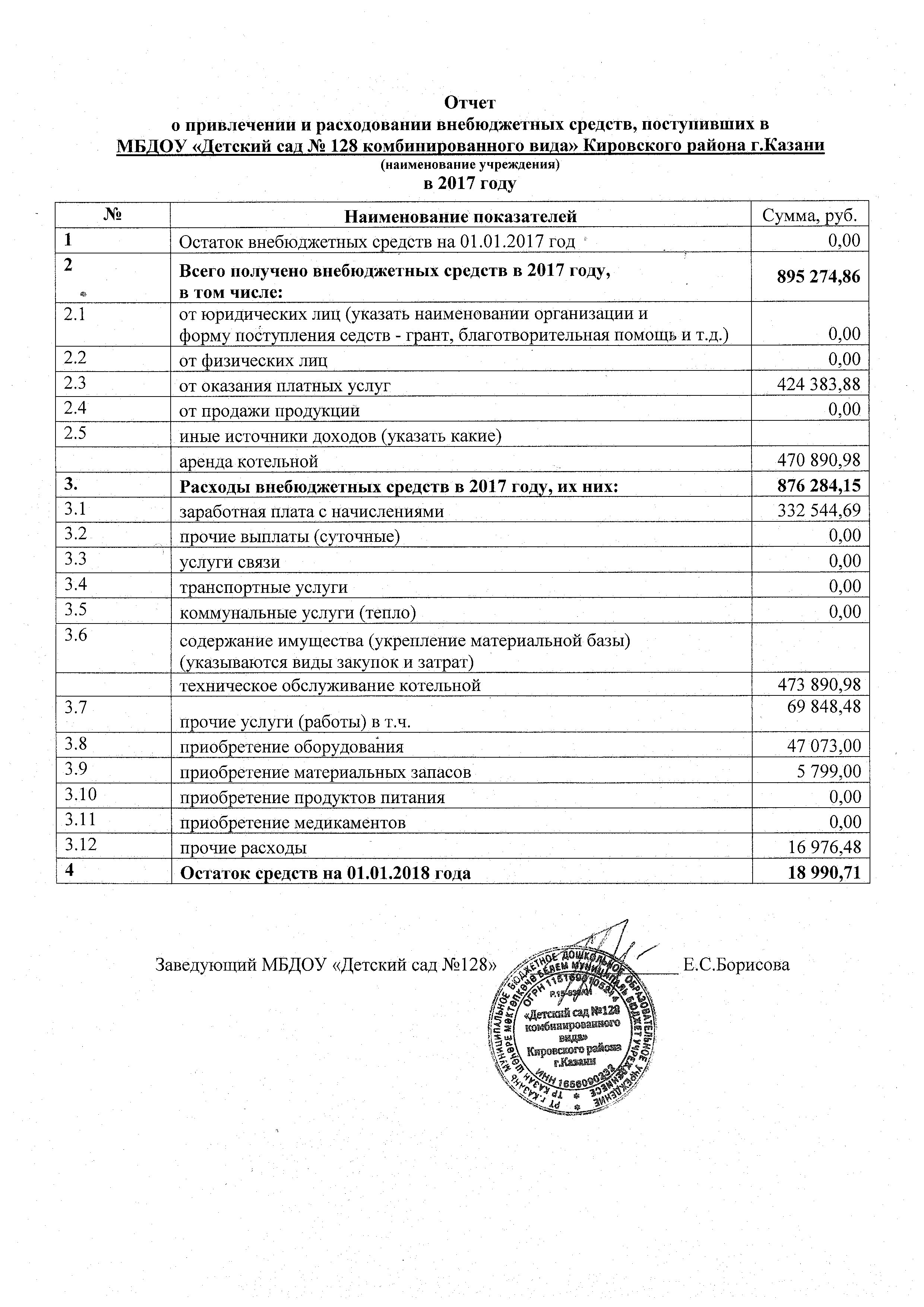 Отчет о привлечении и расходовании внебюджетных средств в 2017