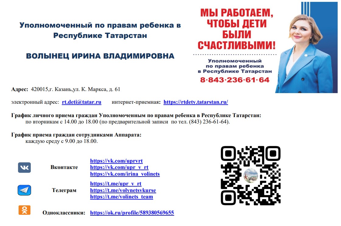 Уполномоченный по правам ребенка в Республике Татарстан ВОЛЫНЕЦ ИРИНА ВЛАДИМИРОВНА