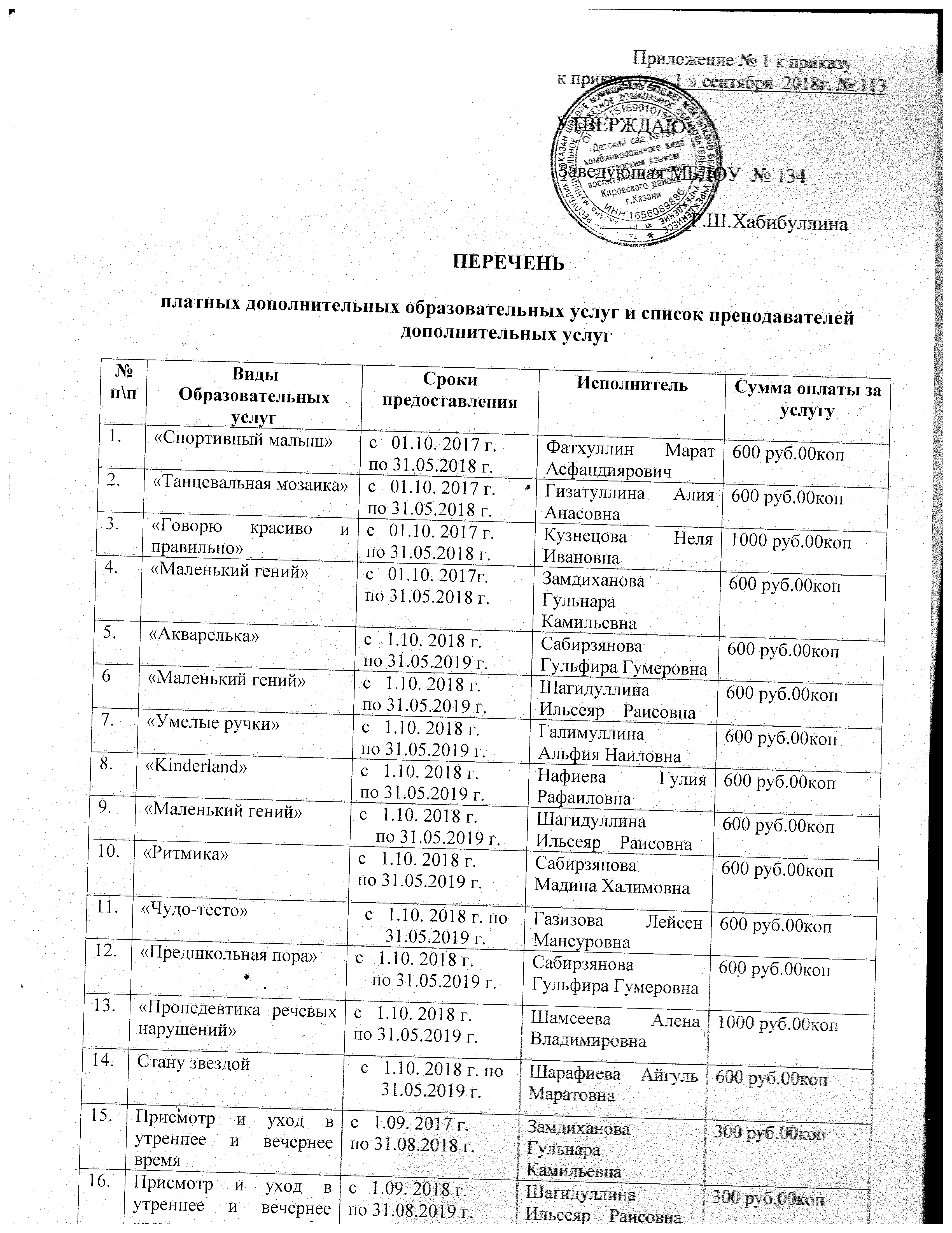 Перечень дополнительных платных образовательных услуг 2018-2019 уч.г.