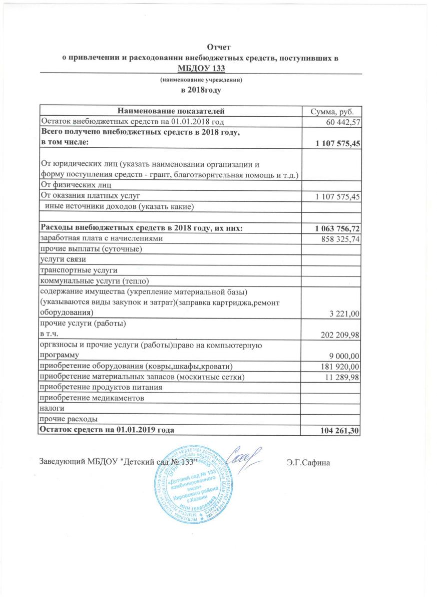 Отчет о привлечении и расходовании внебюджетных средств в 2018 году