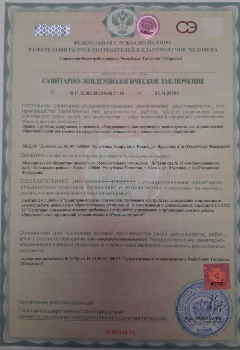 Муниципальное бюджетное дошкольное образовательное учреждение «Детский сад №38 комбинированного вида» Кировского района г.Казани