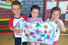 Подводной мир очень красочен и разнообразен, там столько всего интересного: животные, рыбы, растения, водоросли, ракушки. Всё это вызывает огромный интерес у детей. Сегодня наши воспитанники смогли полностью погрузиться в интересную для них тему. Дети изображали морских обитателей всеми доступными способами: рисовали, лепили, создавали таинственный подводный мир.