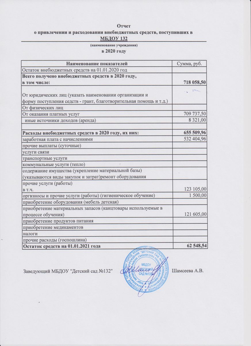 отчет о привлечении и расходовании внебюджетных средств 2020 г.