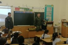 В целях военно-патриотического воспитания, в преддверии Дня защитника Отечества 19 февраля 2020 года детским центром " Заречье" организованы и проведены уроки мужества в начальных классах татарской гимназии №3. Ребята встретились с действующими сотрудниками войсковой части , которые очень интересно рассказали о своей службе, принесли боевое снаряжение, дали детям его померить. Познакомили их с героями Российской росгвардии, подарили буклеты. Встреча получилась очень теплой и полезной. Ребята искренне благодарили офицеров, которые пришли к ним. Фотоотчёт можно посмотреть на нашем сайте в разделе: медиатека - меропрития - Уроки мужества