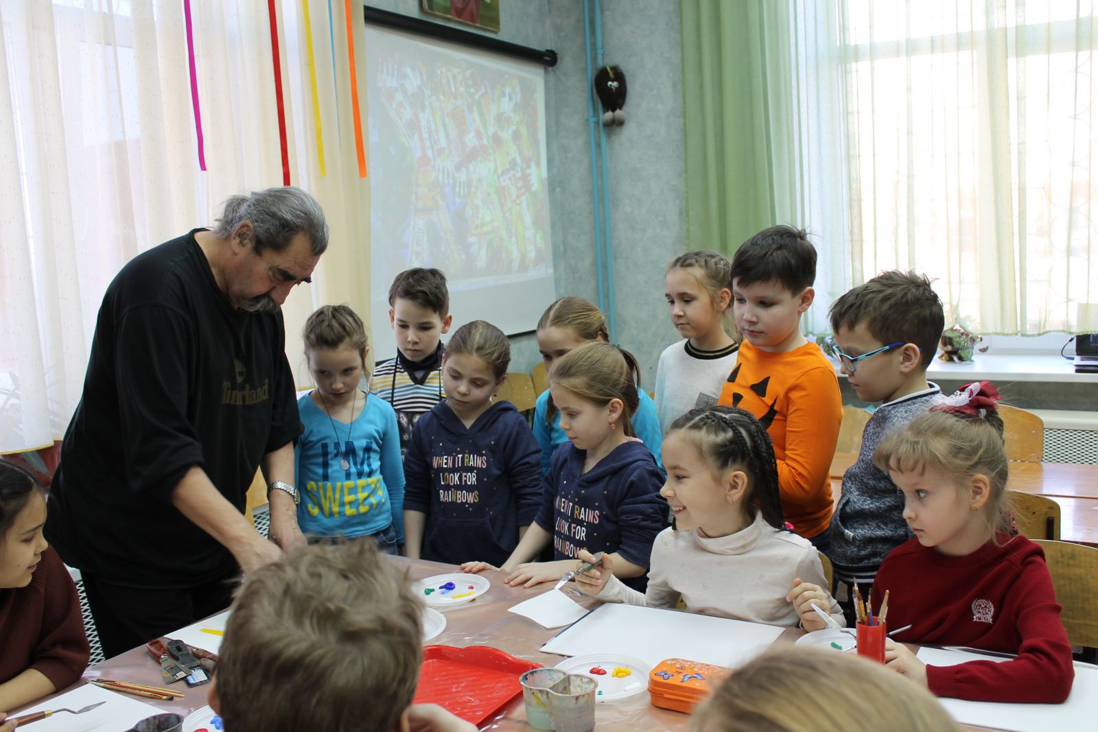 В этот прекрасный февральский день к нам в объединение ИЗО «Ступени» (педагог Забирова Т. А.) пришёл удивительный гость – заслуженный художник Татарстана Виктор Евгеньевич Тимофеев! Творческое занятие всем в удовольствие: запах настоящей краски, работа на холстах, в руках загадочные мастихины и главное беседа с важным художником. В преддверии 100-летия образования Республики Татарстан мы изобразили нашего знаменитого Кота Казанского!Пусть наши озорные коты будут напоминанием об этих тёплых и интересных творческих встречах!