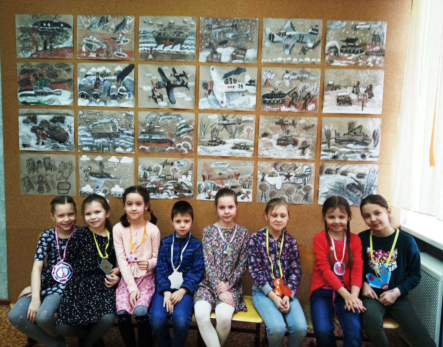 В объединение ИЗО «Ступени» в гр. №2 (педагог Забирова Т. А.) прошло открытое занятие. К этому занятию ребята подготовили прекрасную экспозицию на тему «Дети рисуют войну», на занятии «Песочный дождь» был сделан видео-подарок для ветеранов. Мы познакомились с великими полководцами, маршалами, а также с художниками баталистами. А сегодня своими руками сконструировали медаль Мира! Мы бережно и верно будем хранить мир, который нам достался от наших ветеранов защитников отечества!